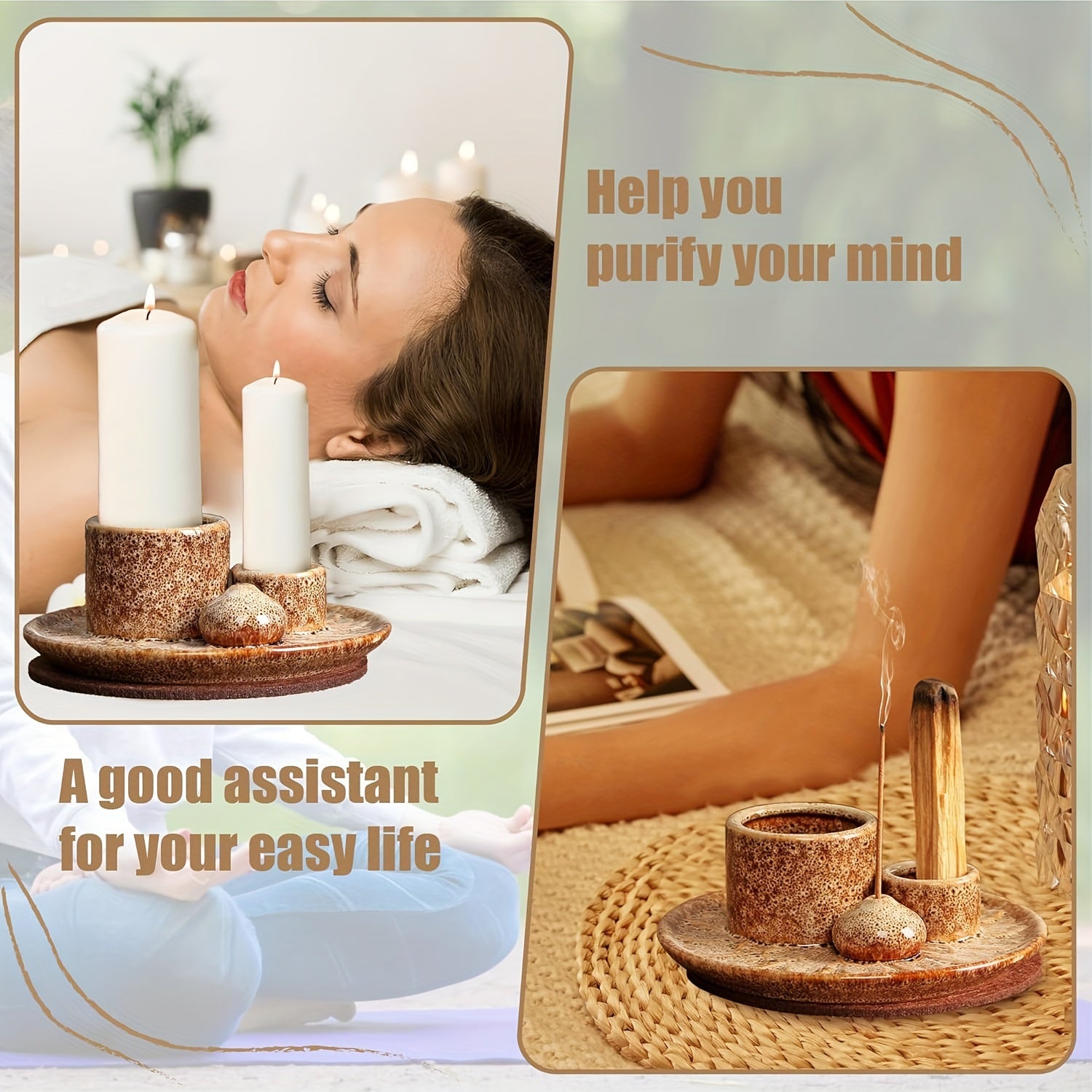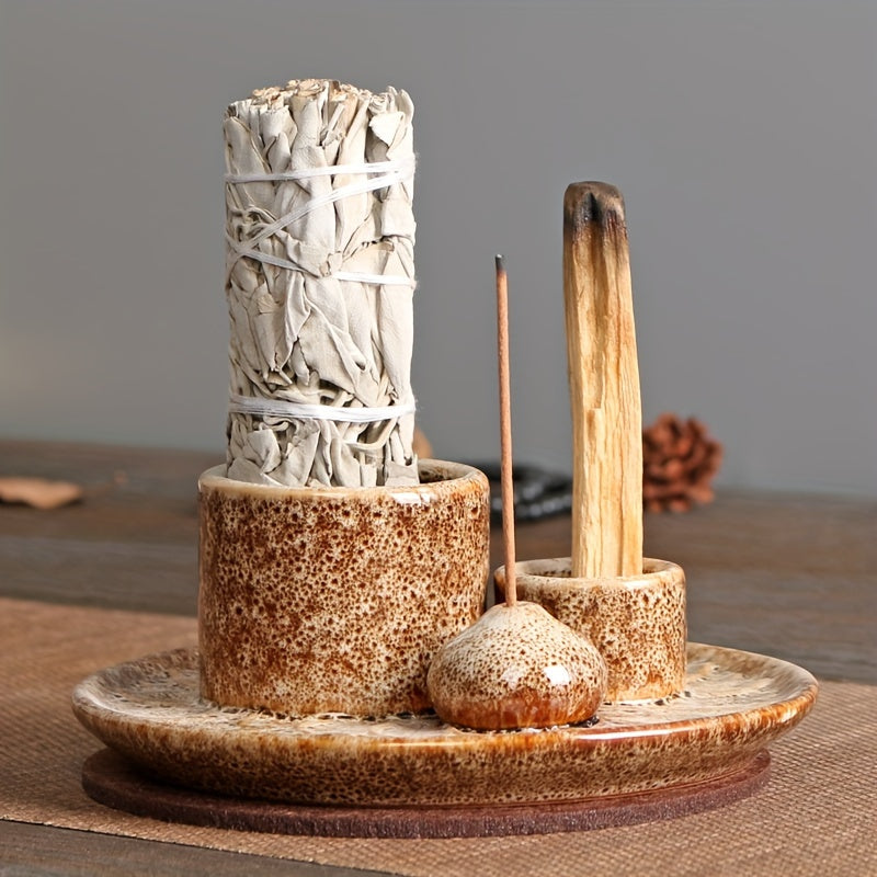 1pc 4-in-1 Ceramic Incense Burner Holder – Palo Santo & Sage Smudge Stand with Stick & Candle Holder, Elegant Home Decor for Meditation, Yoga, and Aromatherapy Relaxation, Home Relaxation | Rustic Ceramic Holder | Terracott