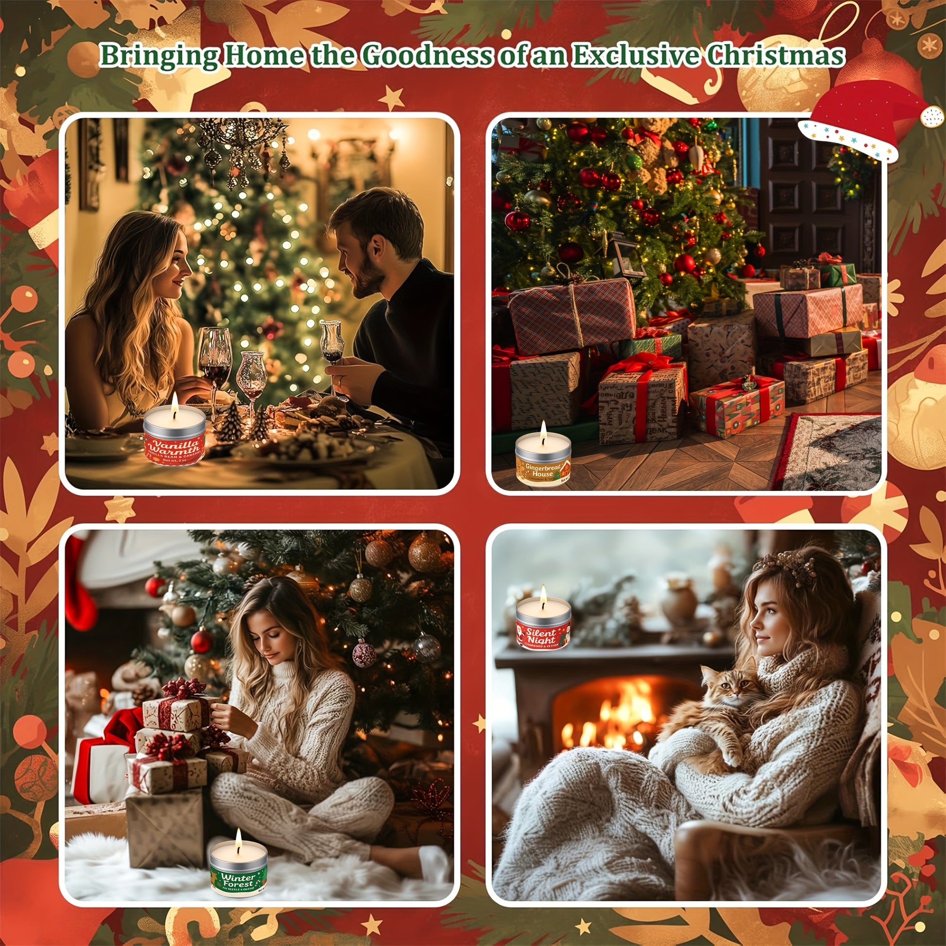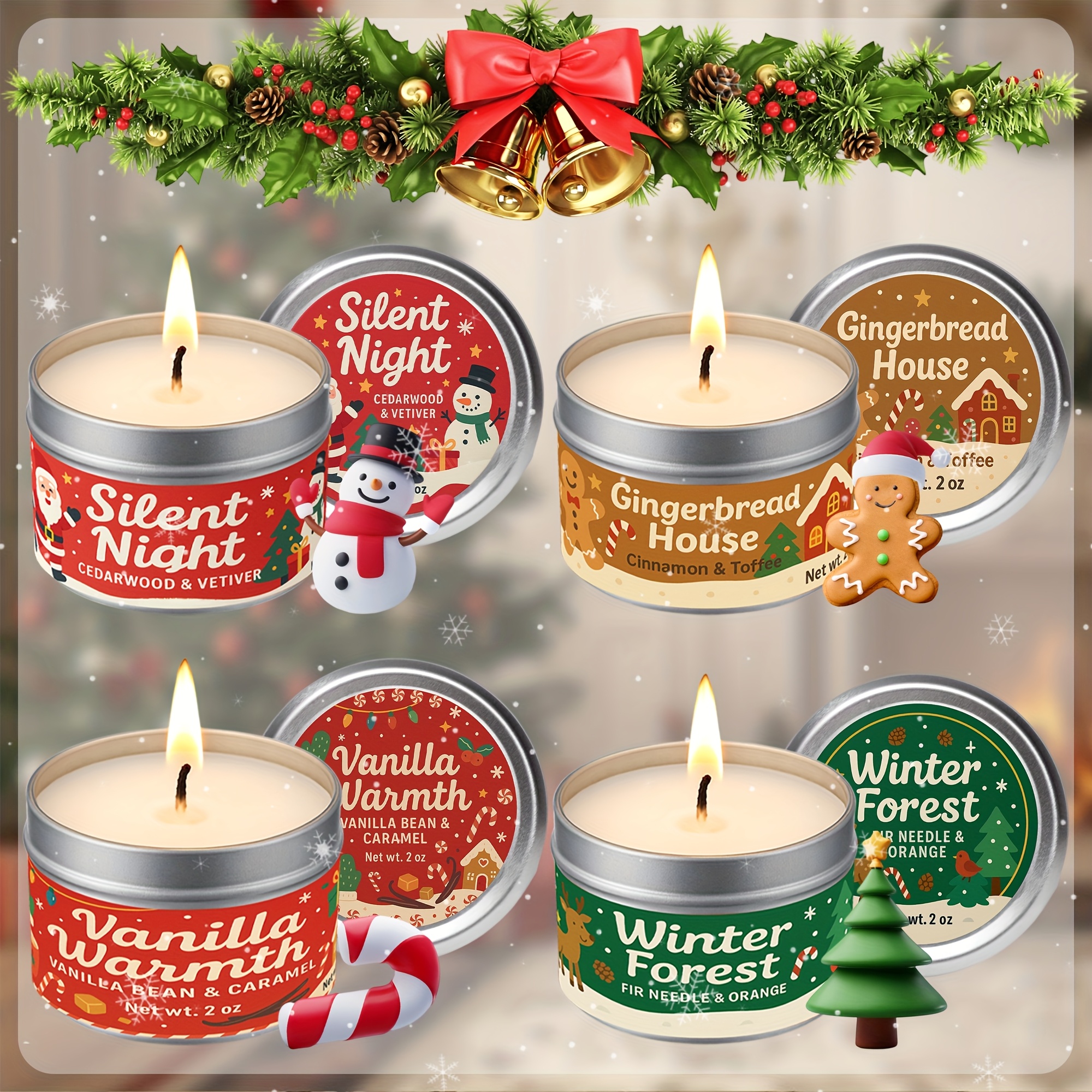 4pcs Premium Holiday Scented Candle Set - Christmas Candles with Cinnamon, Pine Tree & Vanilla Scents | Perfect Gift for Family and Friends | Ideal for Cozy Winter Nights, Holiday Parties & Home Decor | 4x3oz Christmas Candle