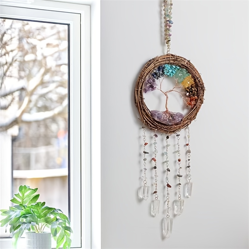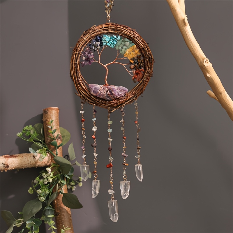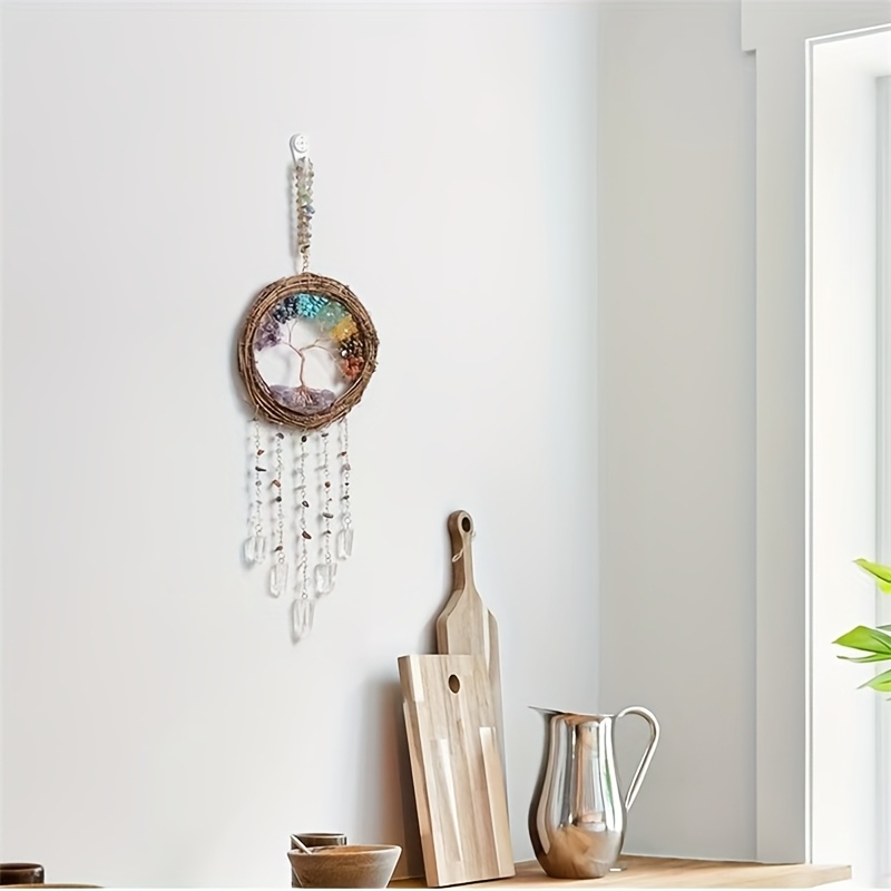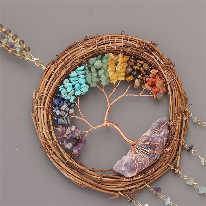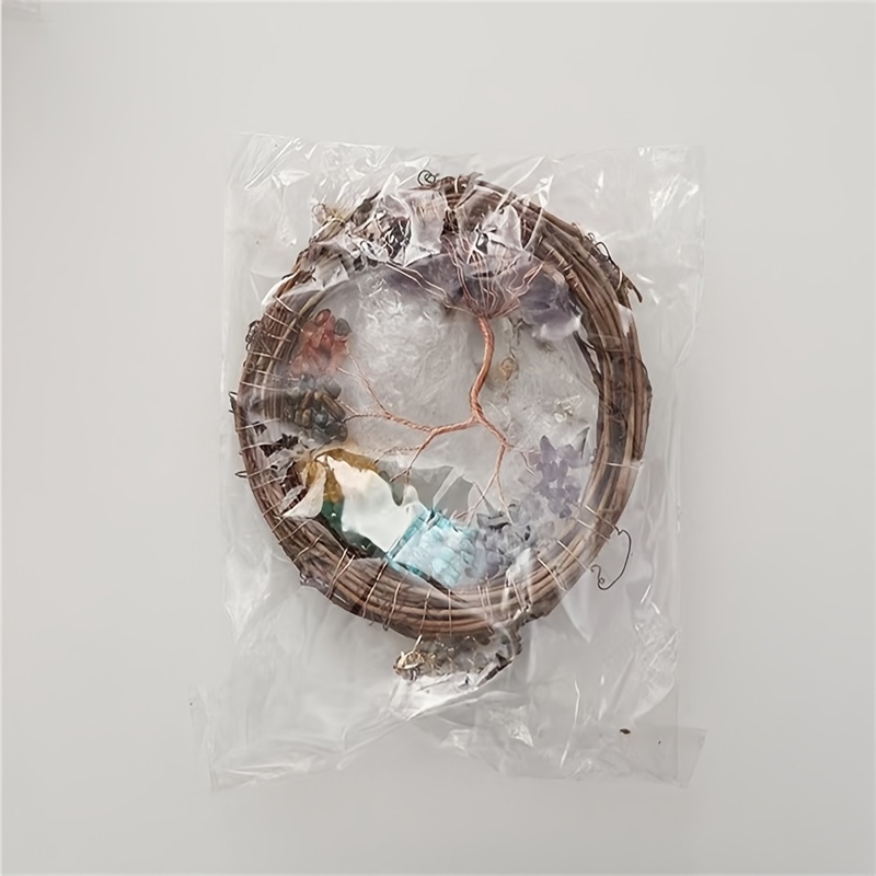 Handcrafted Life Tree Christmas Wreath with Natural Wood, Crystal Accents & Rattan Detailing - Perfect for Holiday Home Decor