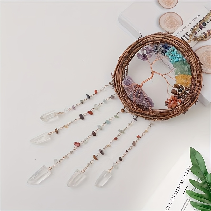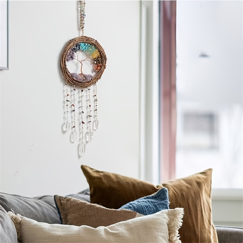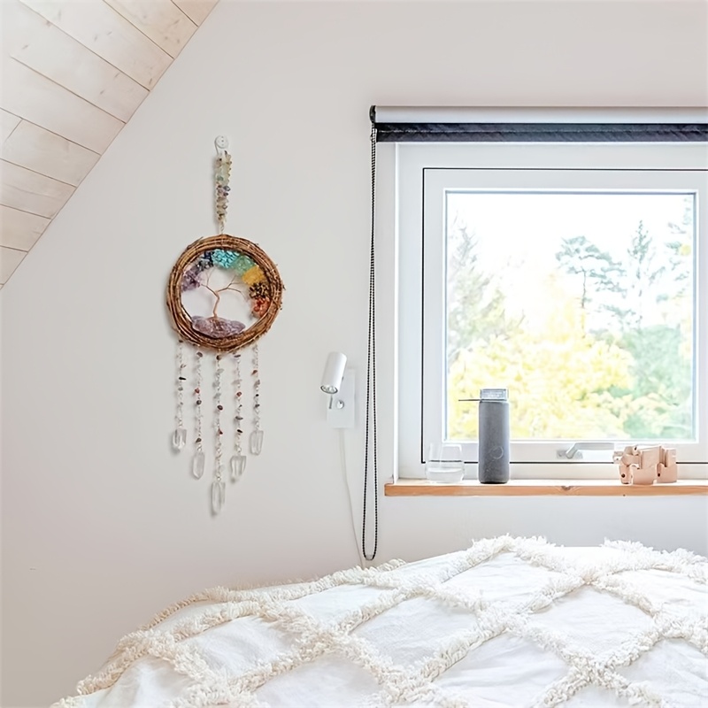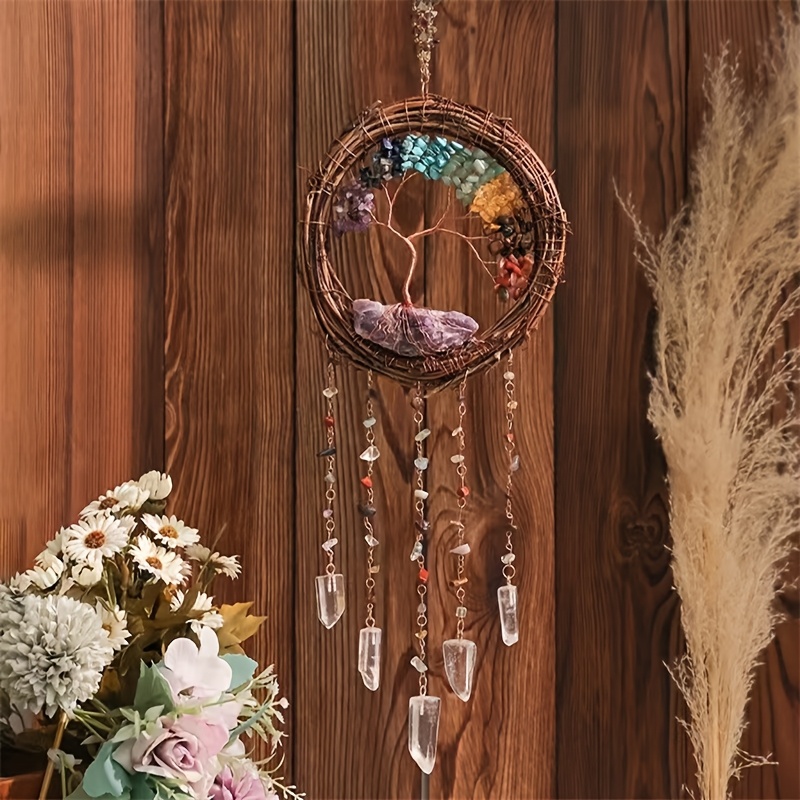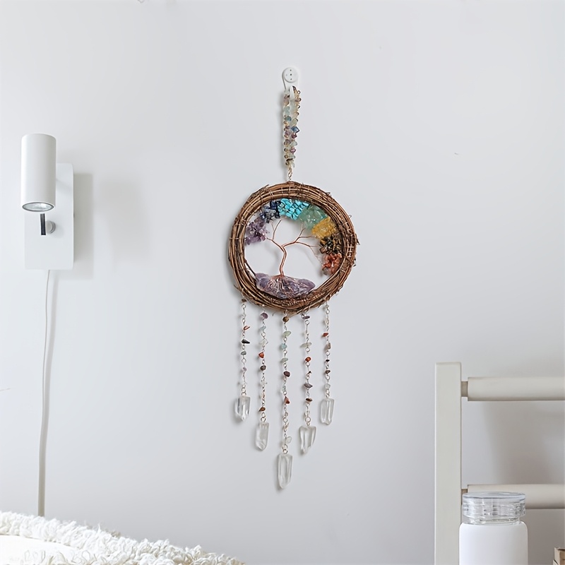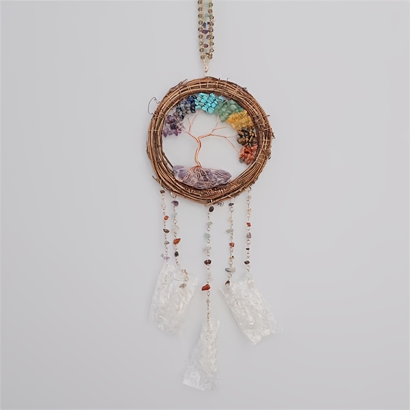Handcrafted Life Tree Christmas Wreath with Natural Wood, Crystal Accents & Rattan Detailing - Perfect for Holiday Home Decor